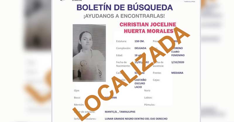 Sus familiares la habían reportado como desaparecida el 1 de octubre en El Mante, por lo que se activaron los protocolos de búsqueda