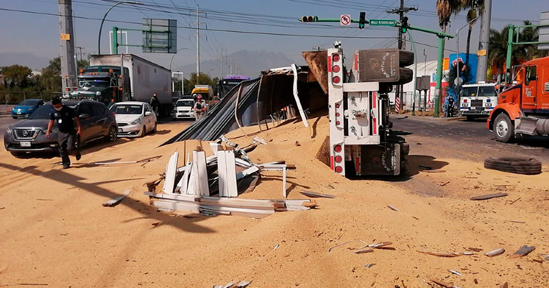 En Nuevo León, un tráiler volcó luego de ser embestido por un tren de carga en el municipio de San Nicolás