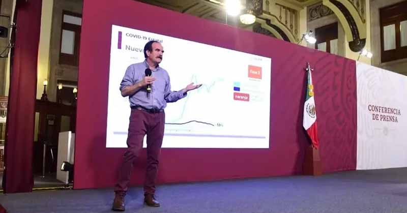 La estimación de casos por Covid-19 tuvo una disminución del -1 por ciento, mientras que de defunciones fue del -51 por ciento, dio a conocer Ruy López Ridaura.