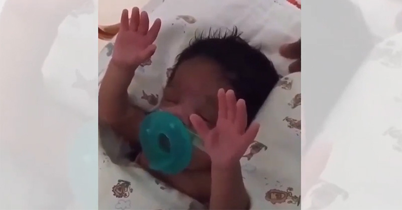 Bebé eleva sus brazos al escuchar el canto de su Mamá – VIDEO
