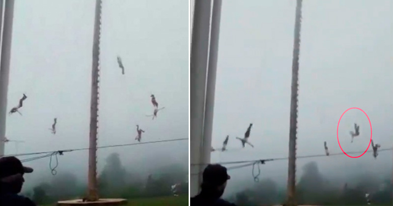 El danzante realizaba el ritual que consiste en atarse de pies de lo alto de un tronco de más de 20 metros de alto y girar de cabeza, cuando repentinamente la cuerda que lo sujetaba se zafo.