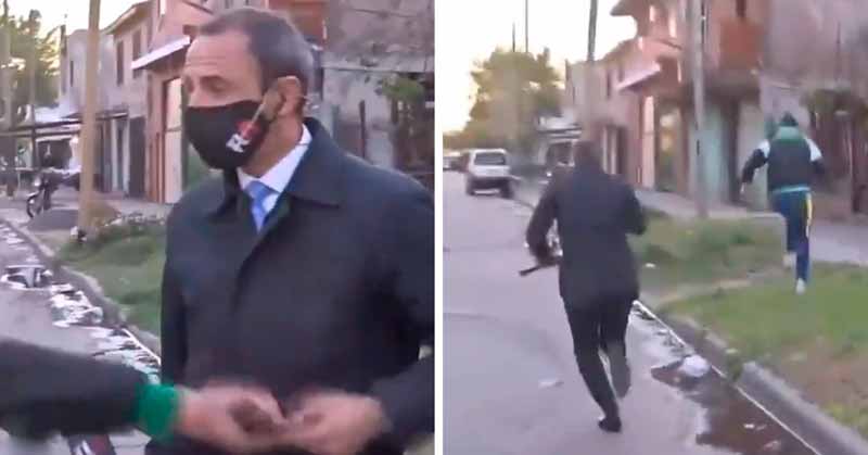 El reportero intentó perseguir sin éxito al ladrón mientras las cámaras seguían grabando.