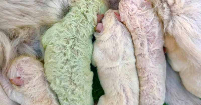 Nace perrito color verde; lo nombraron ‘Pistacho’