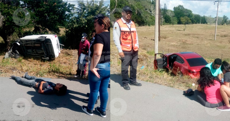 Autos compactos se impactan casi de frente, dos heridos.