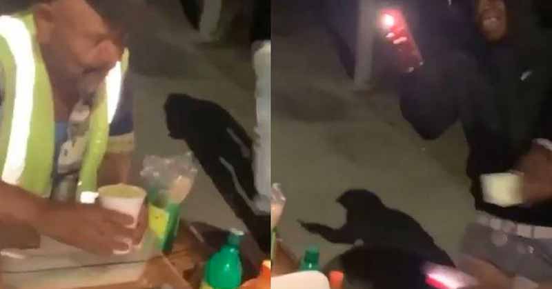 En la grabación se observa que mientras el señor intentaba trabajar, los jóvenes lo rodeaban con sus celulares en mano en medio de burlas.