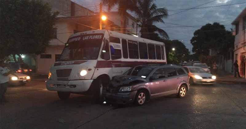 Chocan bus y camioneta en Madero