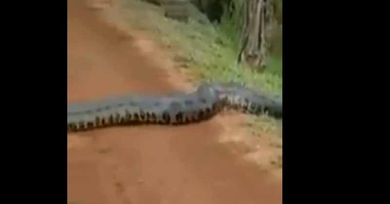 Se hizo viral un video en el que una Anaconda de más de 6 metros cruza una carretera en Brasil, al lado de otras serpientes más pequeñas