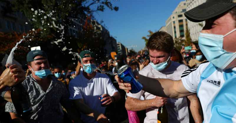 Personas se congregan frente a la Casa Blanca tras victoria de Biden