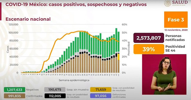 México rebasa los 990 mil casos positivos de Covid-19