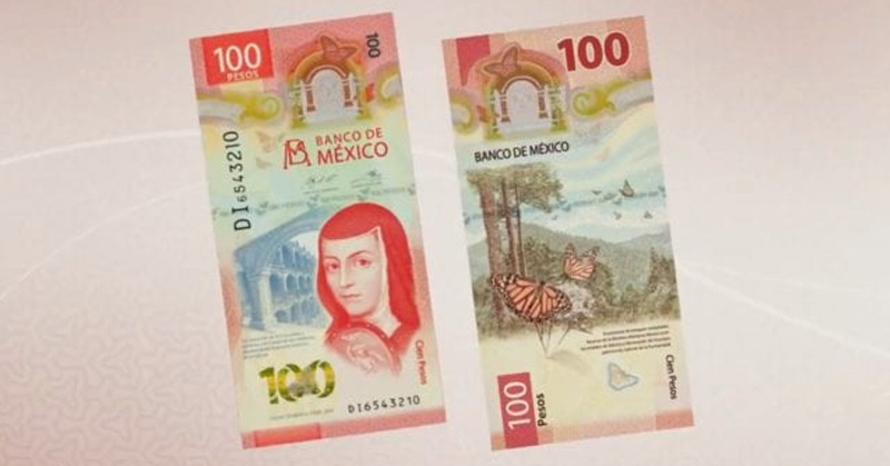 Banxico reveló el nuevo billete de 100 pesos, con imágenes de Sor Juana Inés de la Cruz y de la reserva de la mariposa monarca.