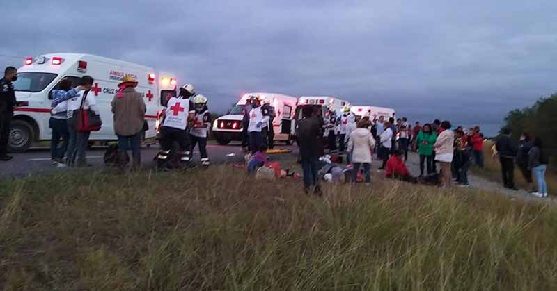 La unidad volvía de la Ciudad de México a San Fernando y Matamoros, cuando volcó a la altura de Padilla