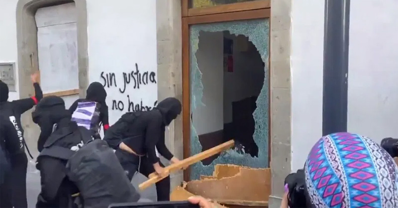 Antes de llegar al Zócalo para manifestarse contra la violencia de género, encapuchadas vandalizaron negocios