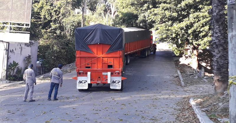 Se requirieron varias grúas para mover la unidad de doble remolque que no transportaba carga.