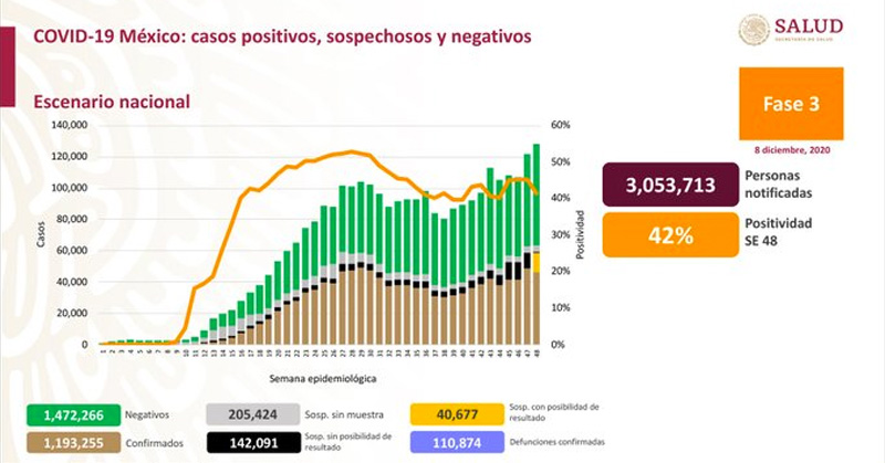 Suman ya 1,193,255 los casos positivos de Covid-19 en México