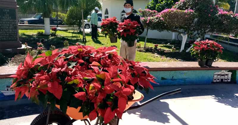 La tradicional «Flor de la Navidad» enmarcan los jardines de la plaza Aníbal Martínez Cuéllar