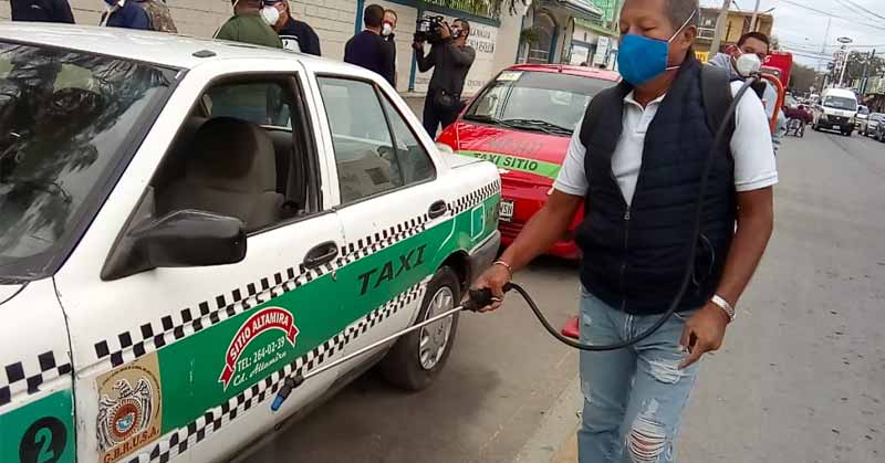 Choferes de taxis inician fuerte campaña de sanitización de sus unidades