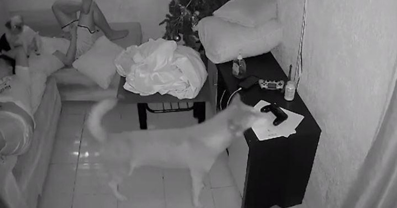 Dos mascotas aprovecharon el profundo sueño de su dueño para destrozar su tarea.