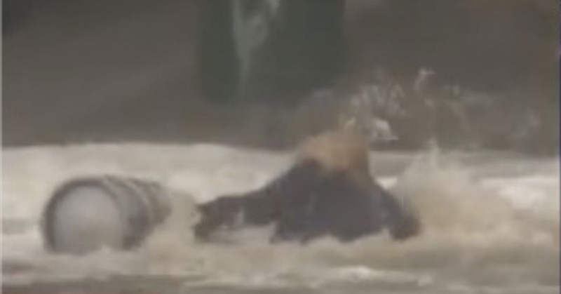 Mujer se lanza al agua para salvar dos barriles de cerveza
