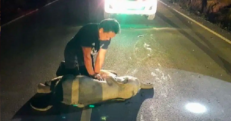 El pequeño paquidermo fue atropellado por una motocicleta, quedando inconsciente en el pavimento.