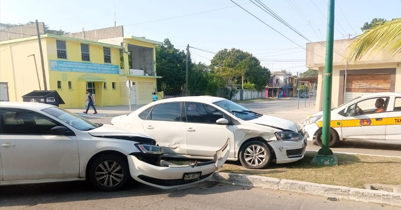 Un automóvil particular acabó encima de un camellón, tras ser impactado por otra unidad, en peligroso cruce de la colonia Enrique Cárdenas González en Tampico.