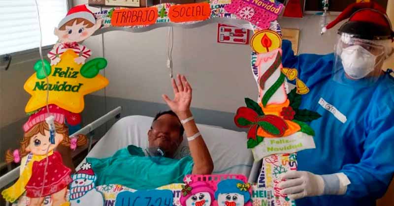 Los pacientes del Hospital Número 24 fueron comunicados con sus familias mediante videollamadas durante esta Navidad; médicos, enfermeras… usan gorros y adornos