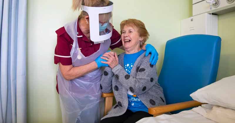 Primera persona vacunada en el mundo recibe la segunda dosis