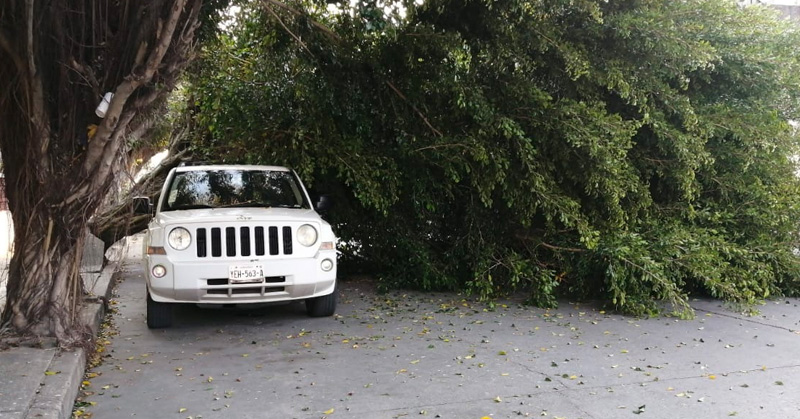 ARBOL SE DESPLOMA; CAE SOBRE DOS CAMIONETAS