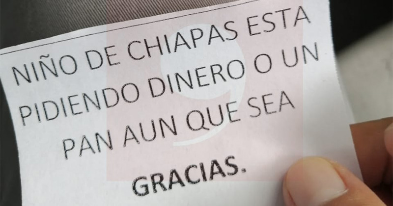 Al ser retirados de manera constante de los cruceros, niños, han optado por subirse a los microbuses donde entregan un papel en el que piden dinero o una pieza de pan