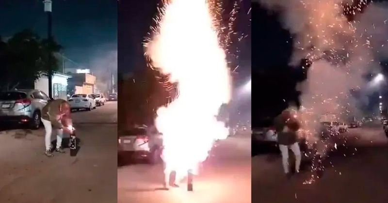 En un descuido, cuando se agachó para encender la mecha, una ‘Bazuka’ explotó en la cara de un hombre, sin que sufriera mayores daños