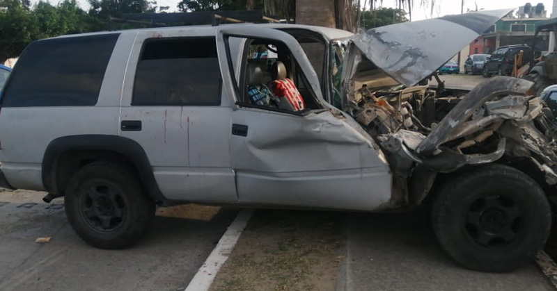 Con la parte frontal destrozada acabó una camioneta particular, al impactarse con un microbús del transporte público y posteriormente con un auto estacionado.