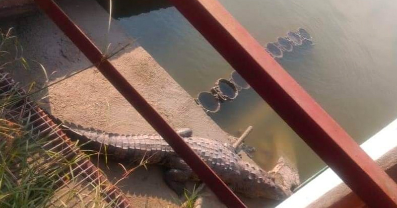 Cocodrilo en instalaciones de Pemex en Ciudad Madero