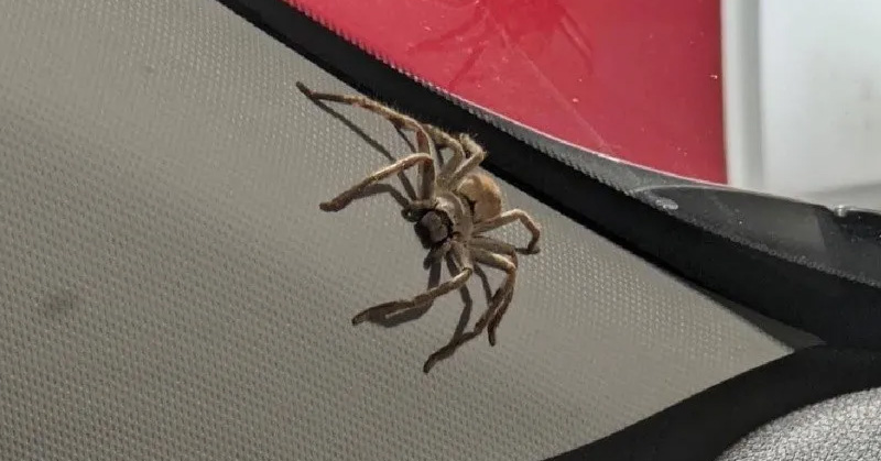 Como si fuera una película de terror, una mujer y sus hijos descubrieron que arañas cazadoras habían cubierto por completo su automóvil en telarañas.