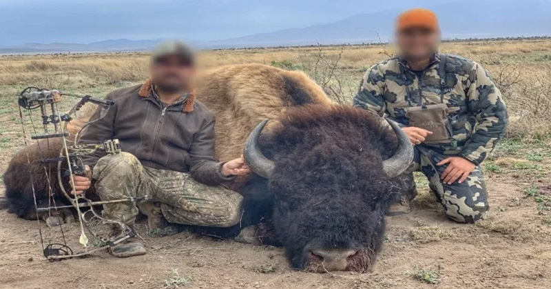 Las fotografías fueron publicadas por la página del rancho cinegético este pasado fin de semana, donde aparecen dos hombres con el cuerpo del bisonte al interior del rancho cercano a Maderas del Carmen.