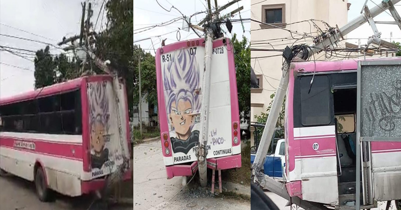 Debido a una falla mecánica un autobús de la ruta Serapio Venegas por Bulevard se proyectó en reversa contra un poste de energía eléctrica.