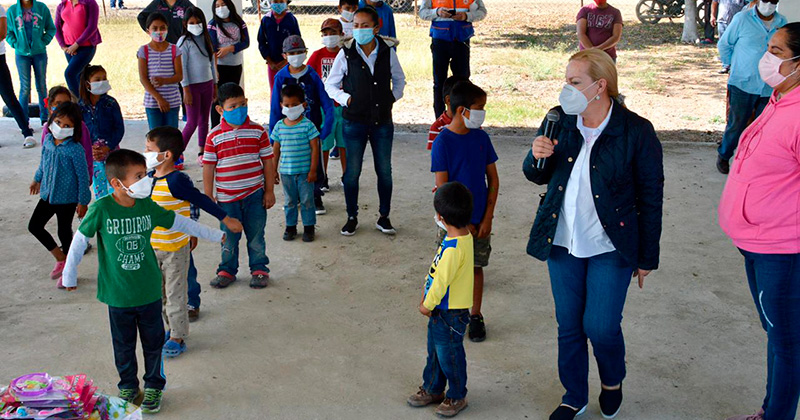 Distribuye alcaldesa dulces y juguetes entre la niñez de los ejidos Santa Juana, Mariano Matamoros, San Antonio, Ampliación San Antonio, Las Tres B, Vuelta de las Yeguas, Providencia y Naranjos, y de la Congregación El Chapopote