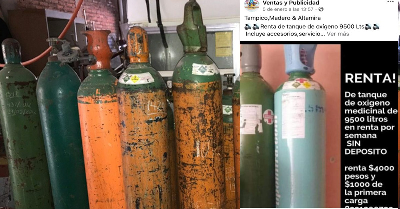 Las redes sociales se ha convertido en un mercado para la venta de tanques de oxígeno de 4 hasta los 5 mil pesos de renta pro semana.