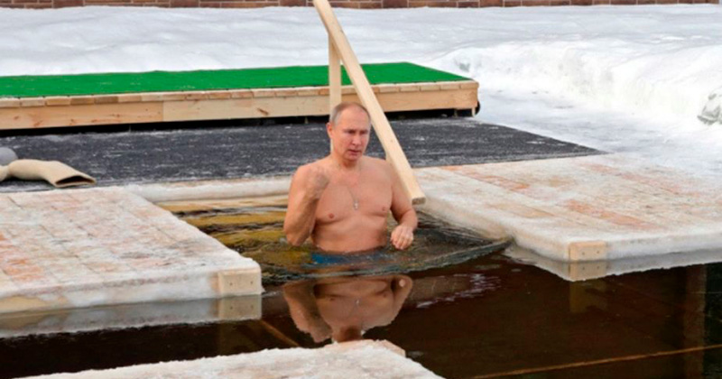 Vladimir Putin se unió a una celebración dentro de la Iglesia Ortodoxa en donde se sumergió en agua helada para «liberarse del pecado»