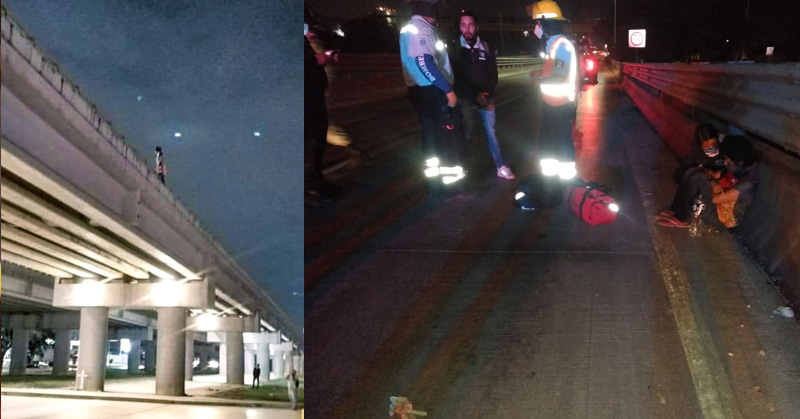Joven mujer trató de lanzarse desde un puente para acabar con su vida pero fue convencida por elementos de cuerpos de emergencia para no hacerlo.