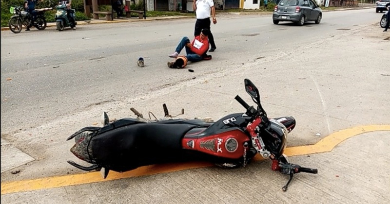 Camioneta le cierra el paso y lo derriba con todo y su unidad