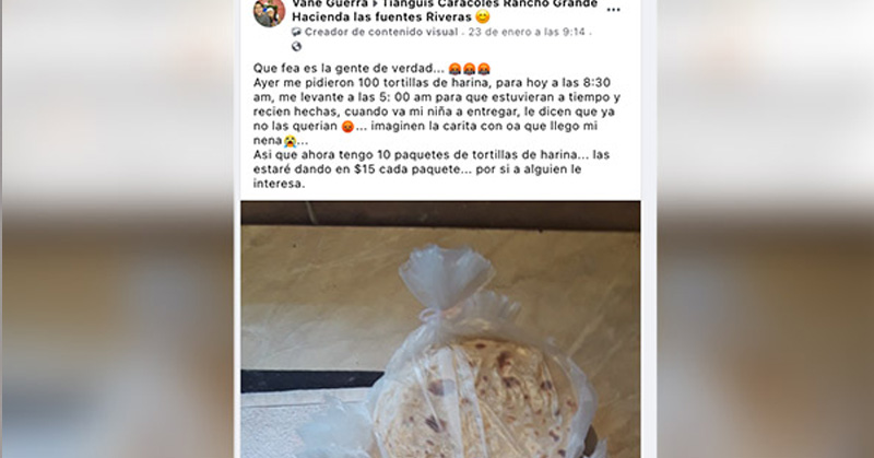 Le rechazan sus tortillas de harina, conmueve las redes y se le agotan