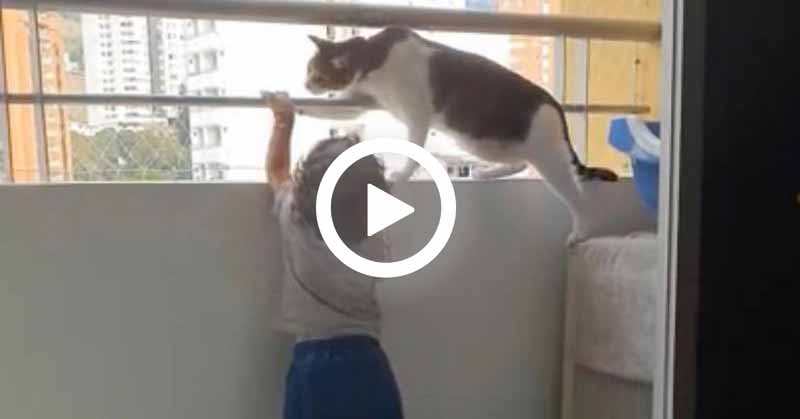 Video: Gato salva a bebé de caerse por el balcón