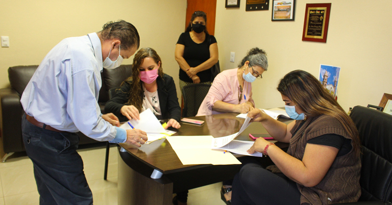 El presidente municipal Enrique Rivas Cuéllar entrega órdenes de compra de equipamiento