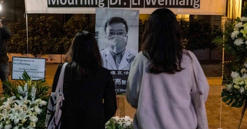 Varias de las personas acudieron con ramos de flores y fotografías del doctor Wenliang y señalaron que lo consideran “un héroe nacional”