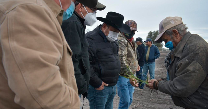 Recorrió las zonas agrícolas afectadas por las heladas en los municipios de San Fernando, Valle Hermoso, Matamoros, Río Bravo y Reynosa
