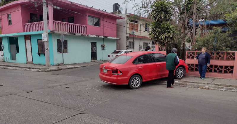 TAMPICO.- Contra la barda de un domicilio se estampó un vehículo particular, después de chocar con otra unidad, en calles de la zona norte de Tampico.