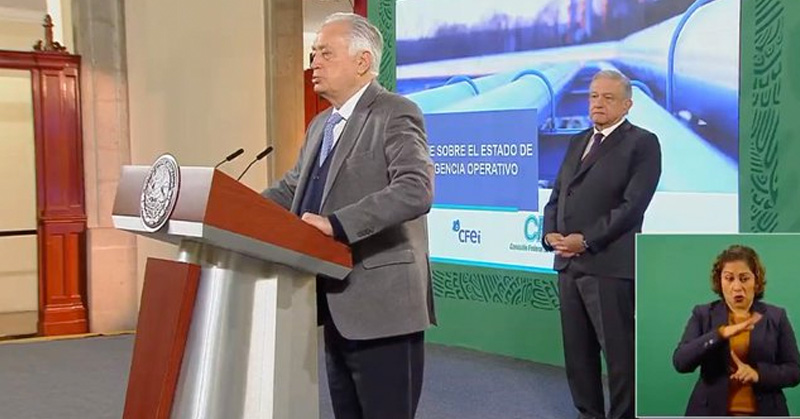 MÉXICO.- El director de la Comisión Federal de Electricidad (CFE), Manuel Bartlett, informó que la crisis por la falta de gas natural importado desde Texas inició la semana pasada por las heladas en Estados Unidos (EU), lo que llevó a la CFE a tener una reunión de emergencia el viernes 12 de febrero y declarar una «emergencia operativa».