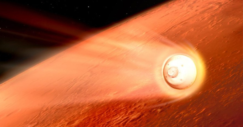 Diez minutos antes de ingresar a la atmósfera de Marte, se separará de la etapa de crucero, que le suministró combustible durante el viaje.
