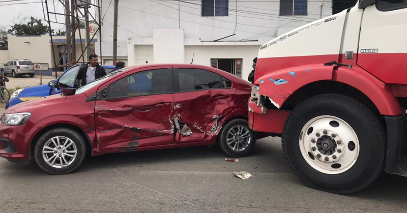 Aparatoso choque entre un tráiler y un automóvil particular dejó como saldo elevados daños materiales, en el municipio de Altamira.