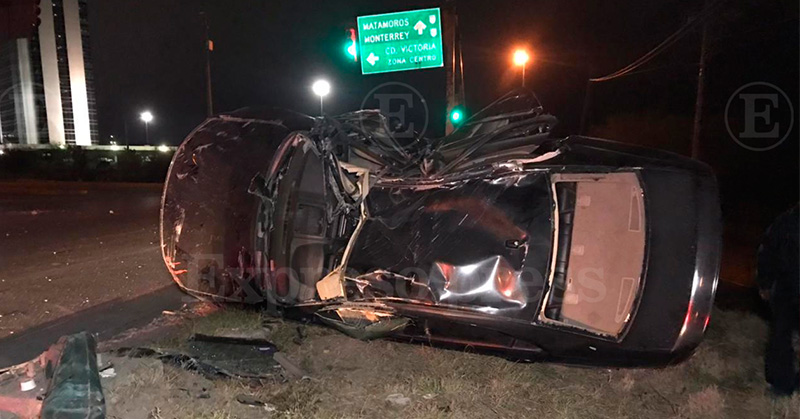 El impacto fue tan fuerte que la unidad dio una voltereta que lo dejo llantas hacia arriba y totalmente destrozado.