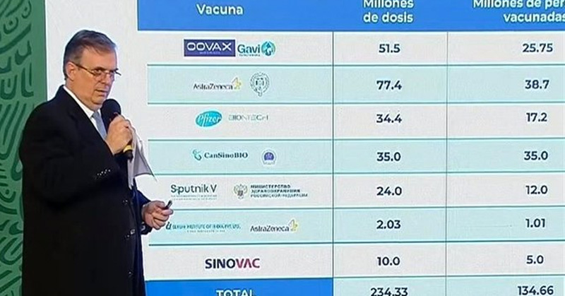 El canciller Ebrard que México adquirió con COVAX 51.5 millones de dosis para 25.75 millones de personas